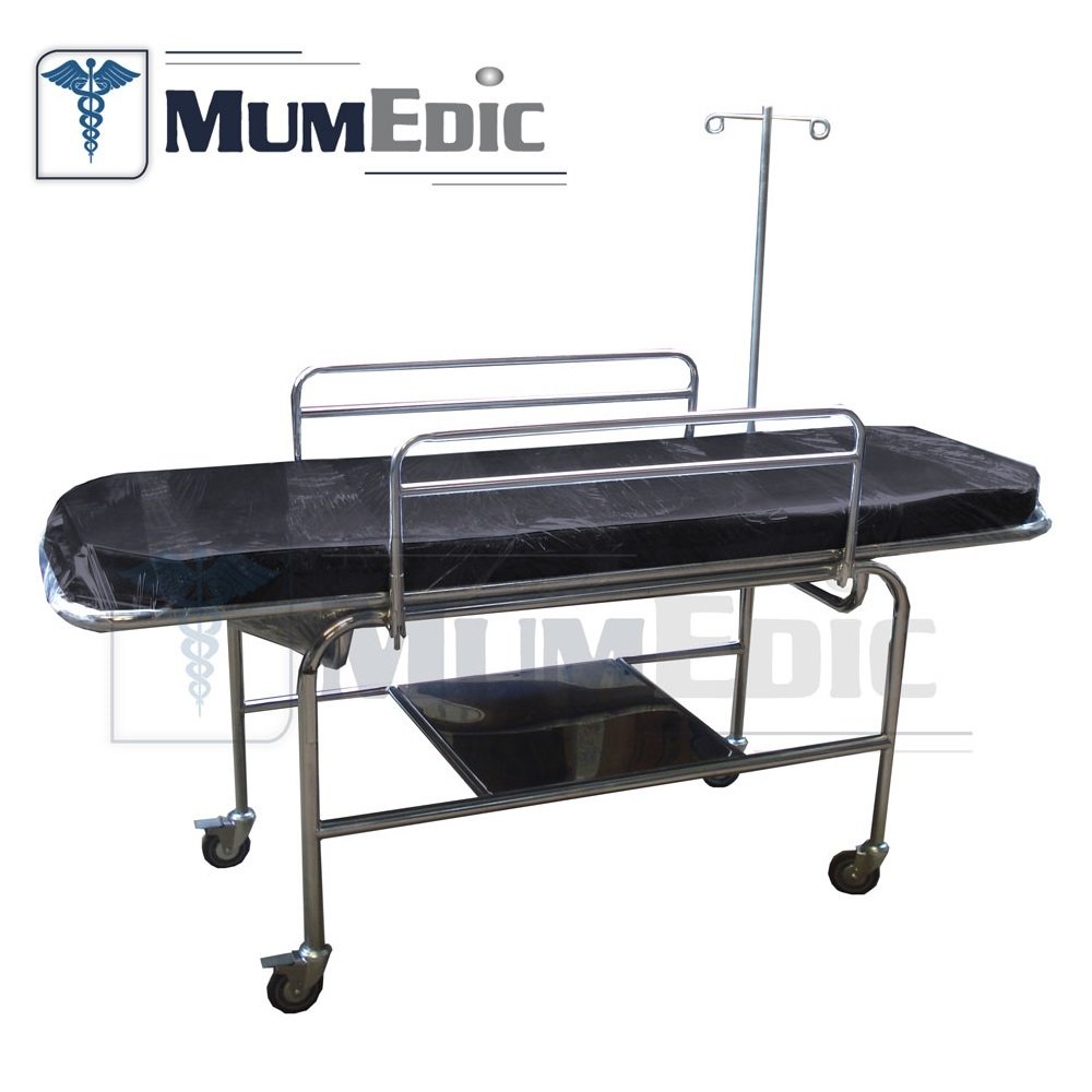 • Con 2 barandas removibles, con 1 repisa inferior en acero inoxidable, 4 garruchas dos de ellas con freno.
